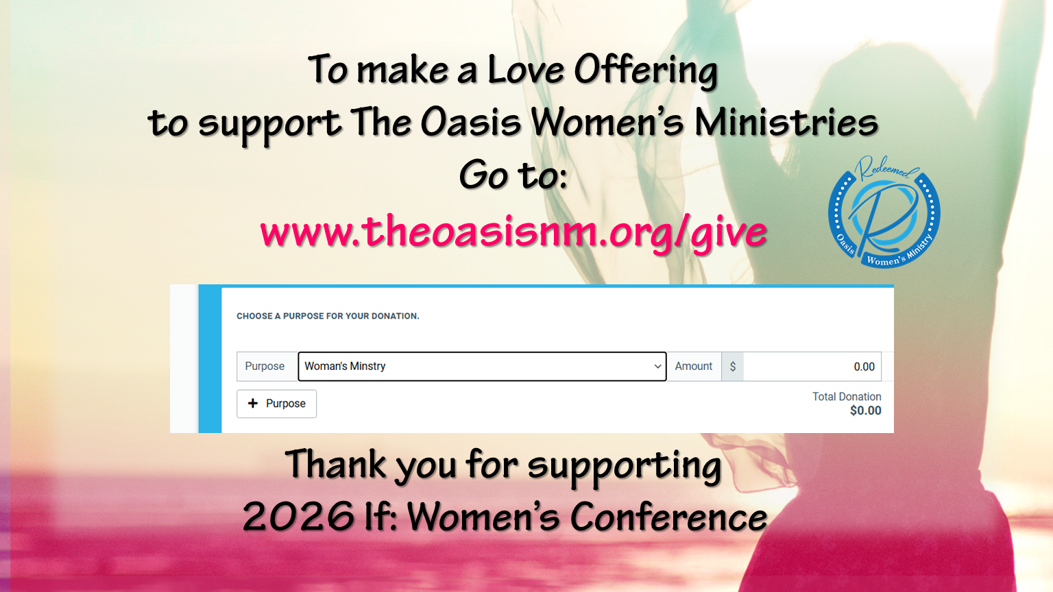 Online giving is an opportunity for planned giving and partnership with the mission and ministries of The Oasis.